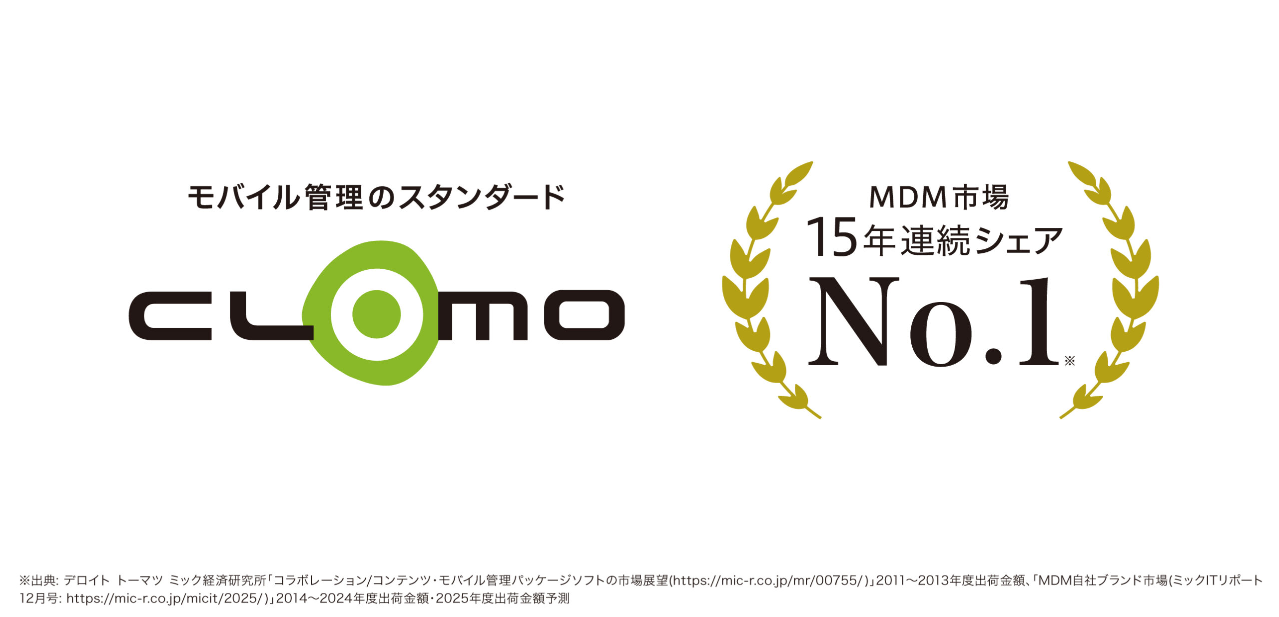 エンタープライズモバイル管理ソフトウェアを提供する、株式会社アイキューブドシステムズ(本社: 福岡県福岡市、代表取締役執行役員社長 CEO: 佐々木 勉、以下、アイキューブドシステムズ)は、モバイル端末管理ソフトウェアサービス「CLOMO」が日本国内のMDM市場(自社ブランド)シェアにおいて、2011年度から2025年度の15年連続でシェアNo.1(*1)を獲得したことをお知らせします。